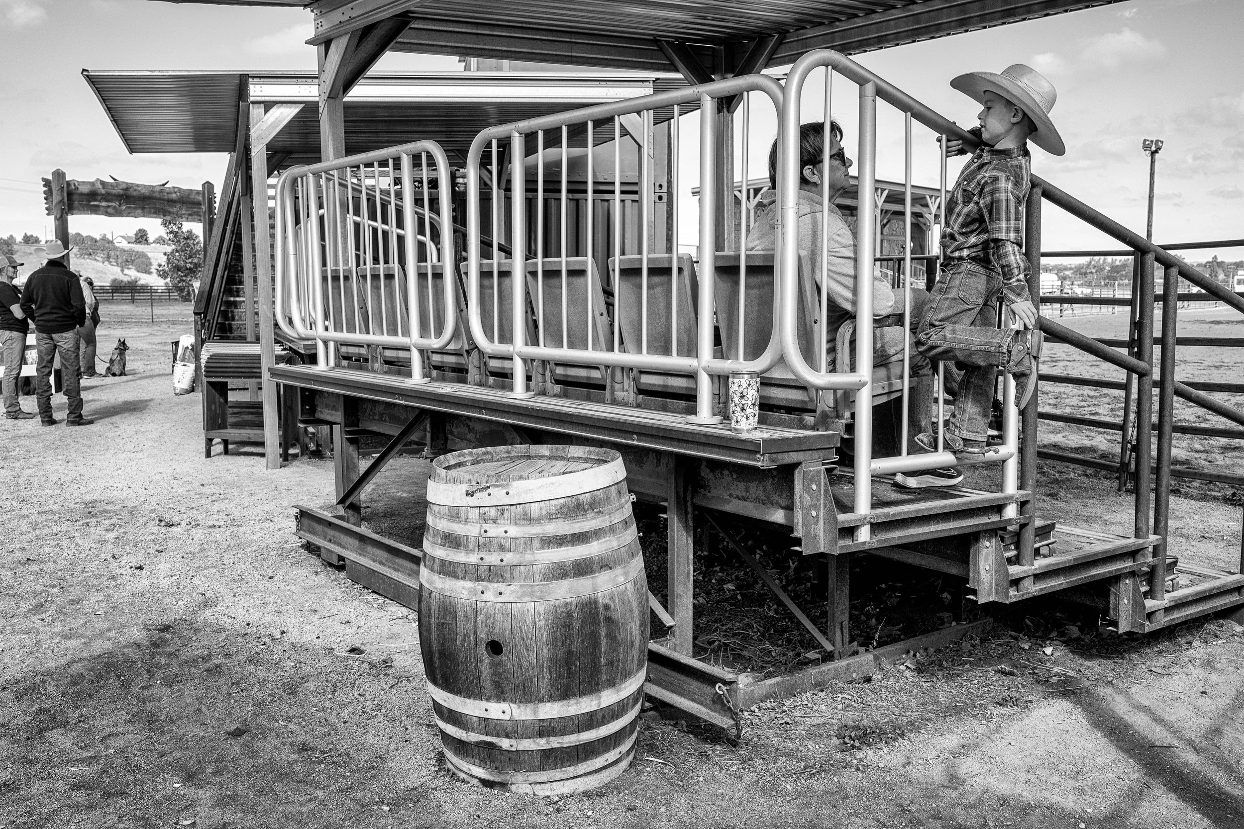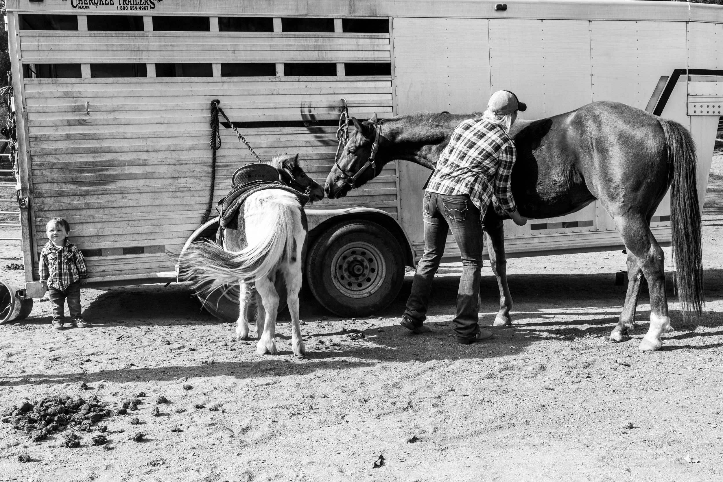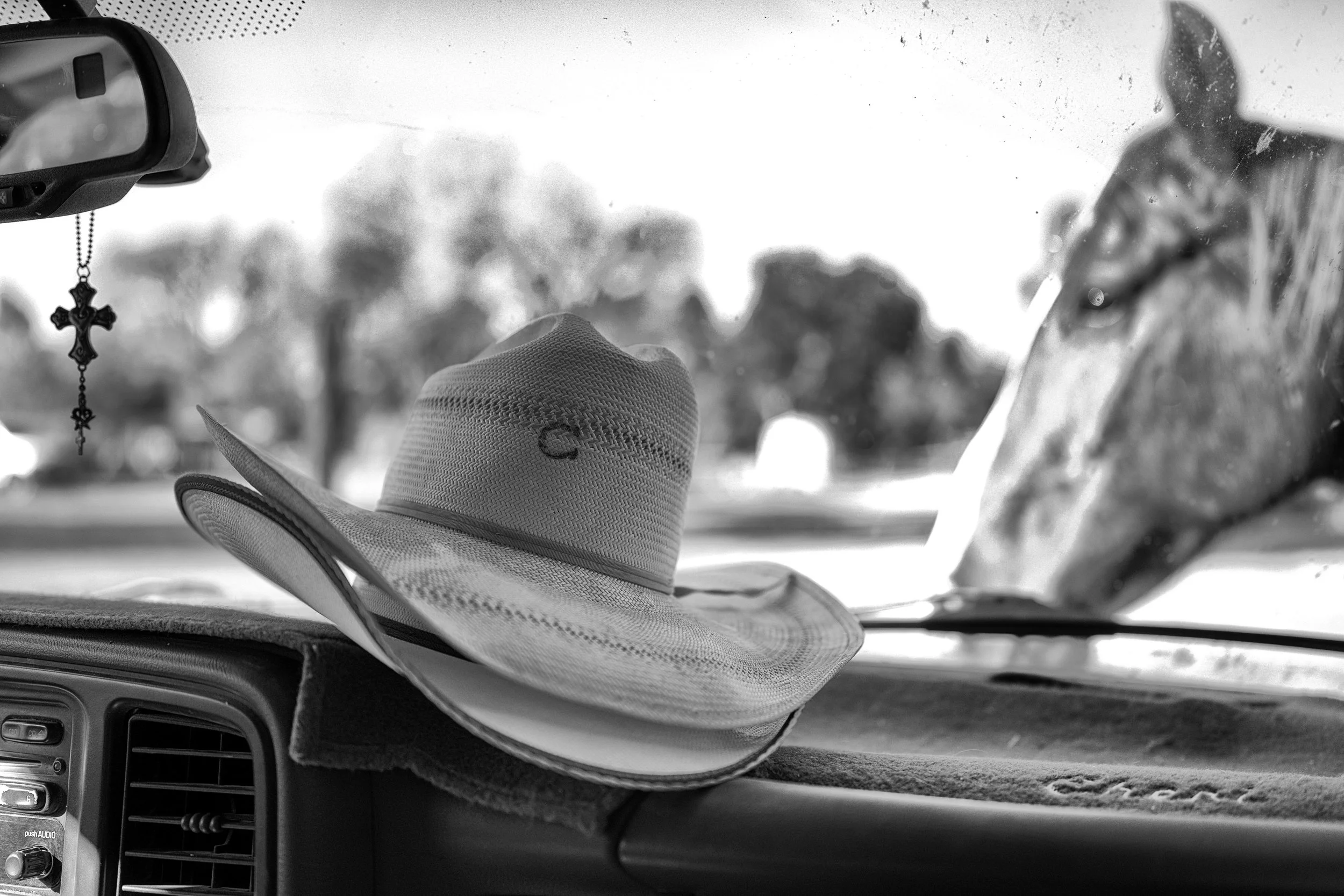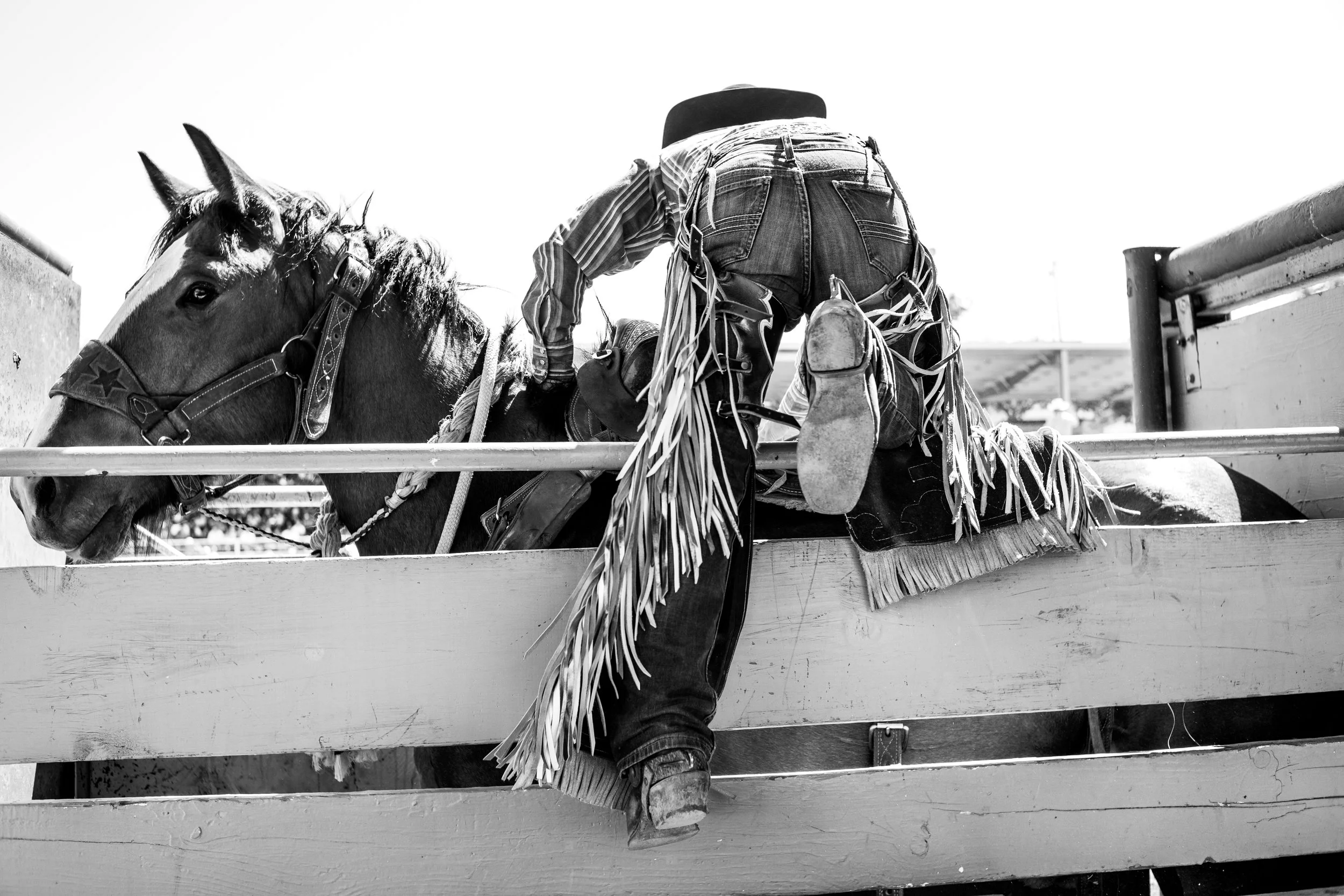 This Cowboy is taking a break after riding his horse. Bottle in hand…