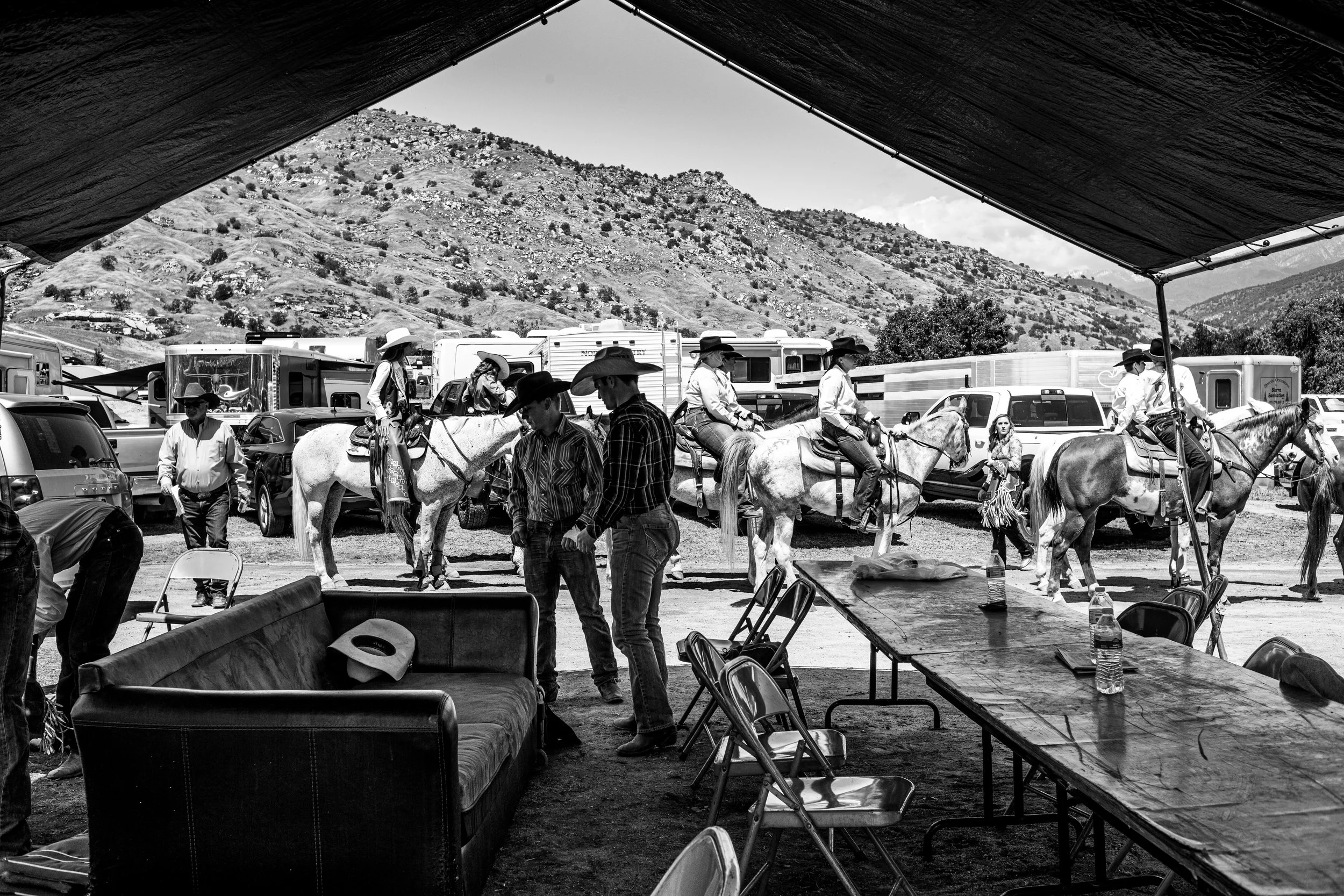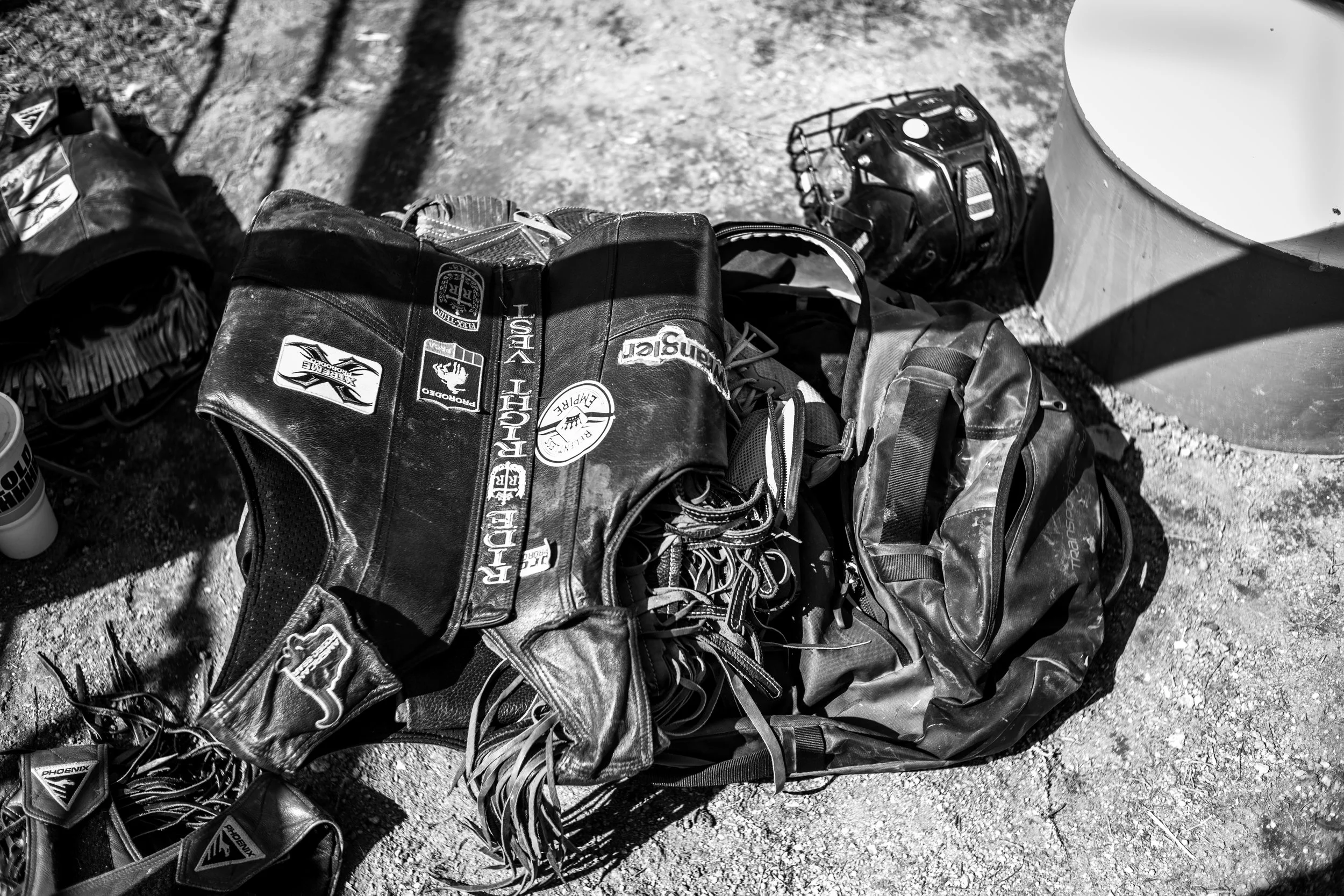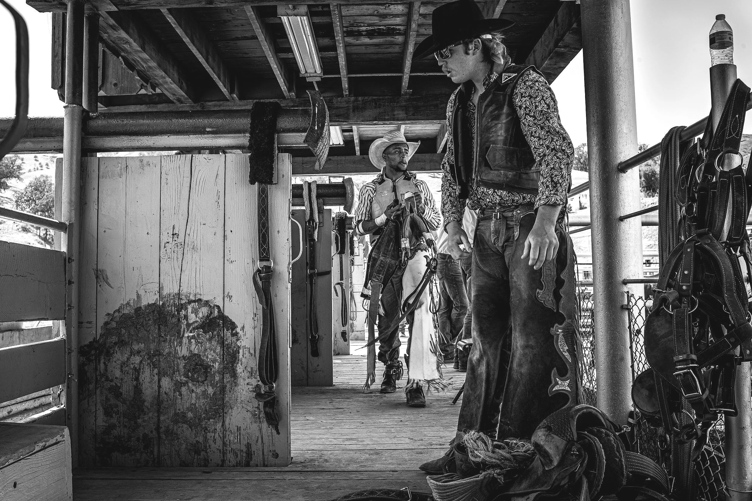 This Cowboy is taking a break after riding his horse. Bottle in hand…