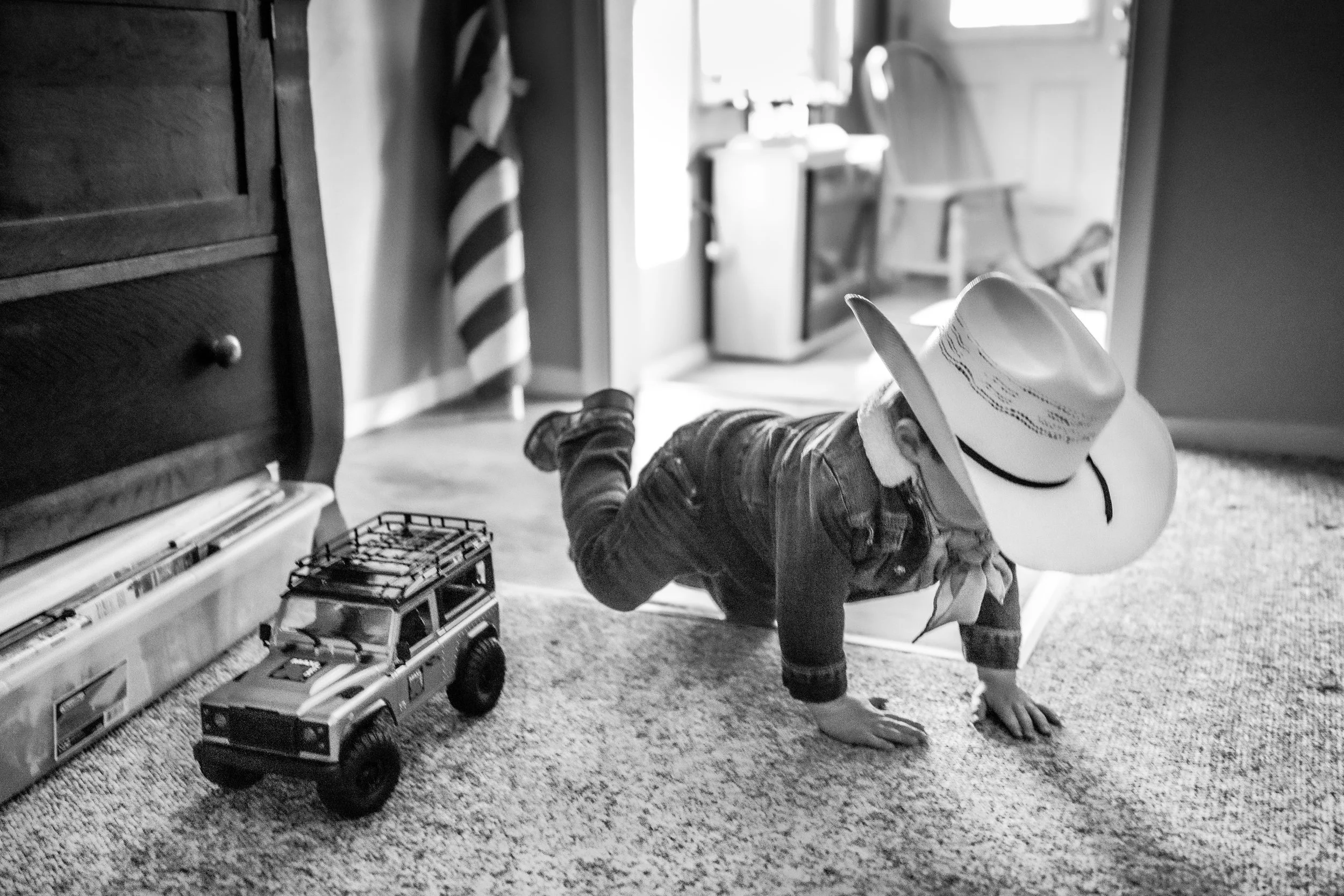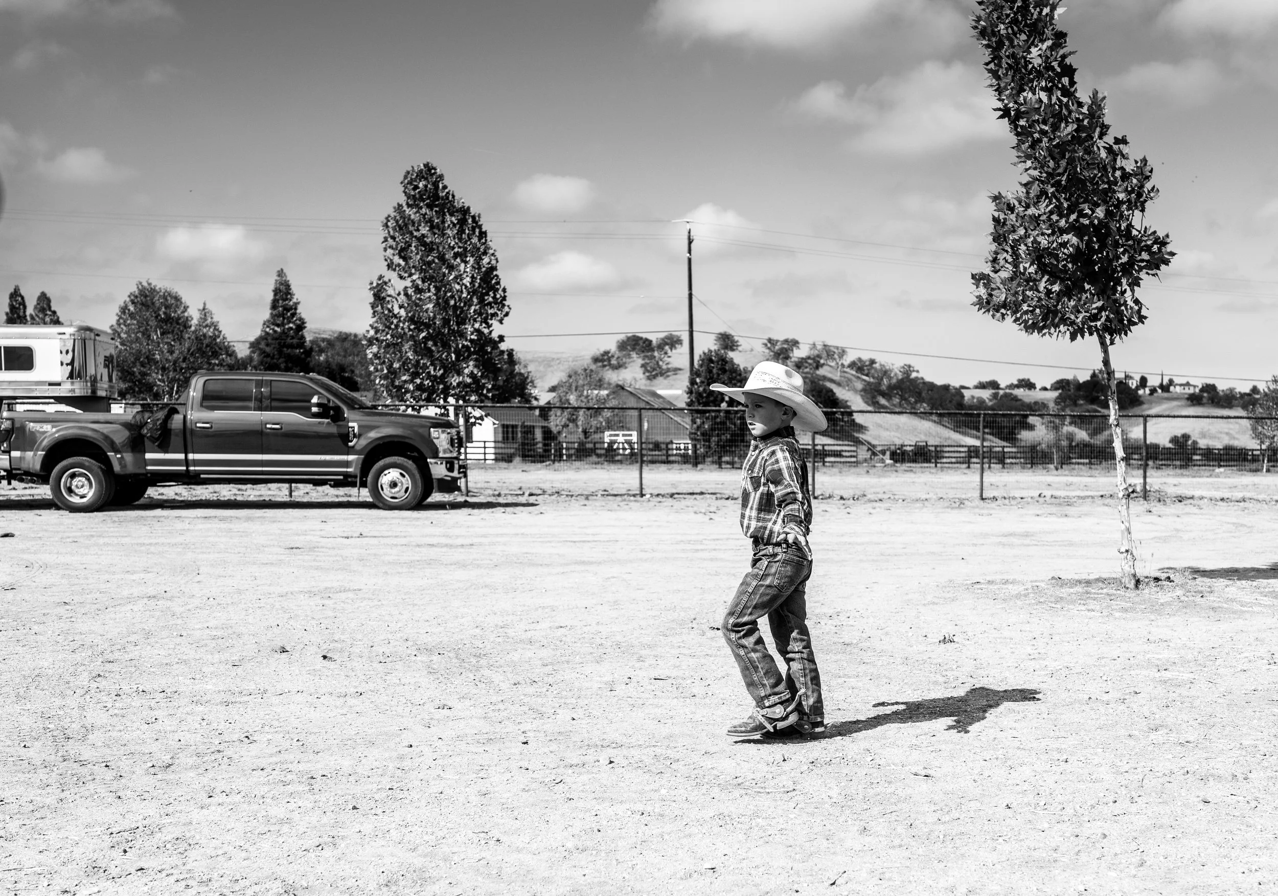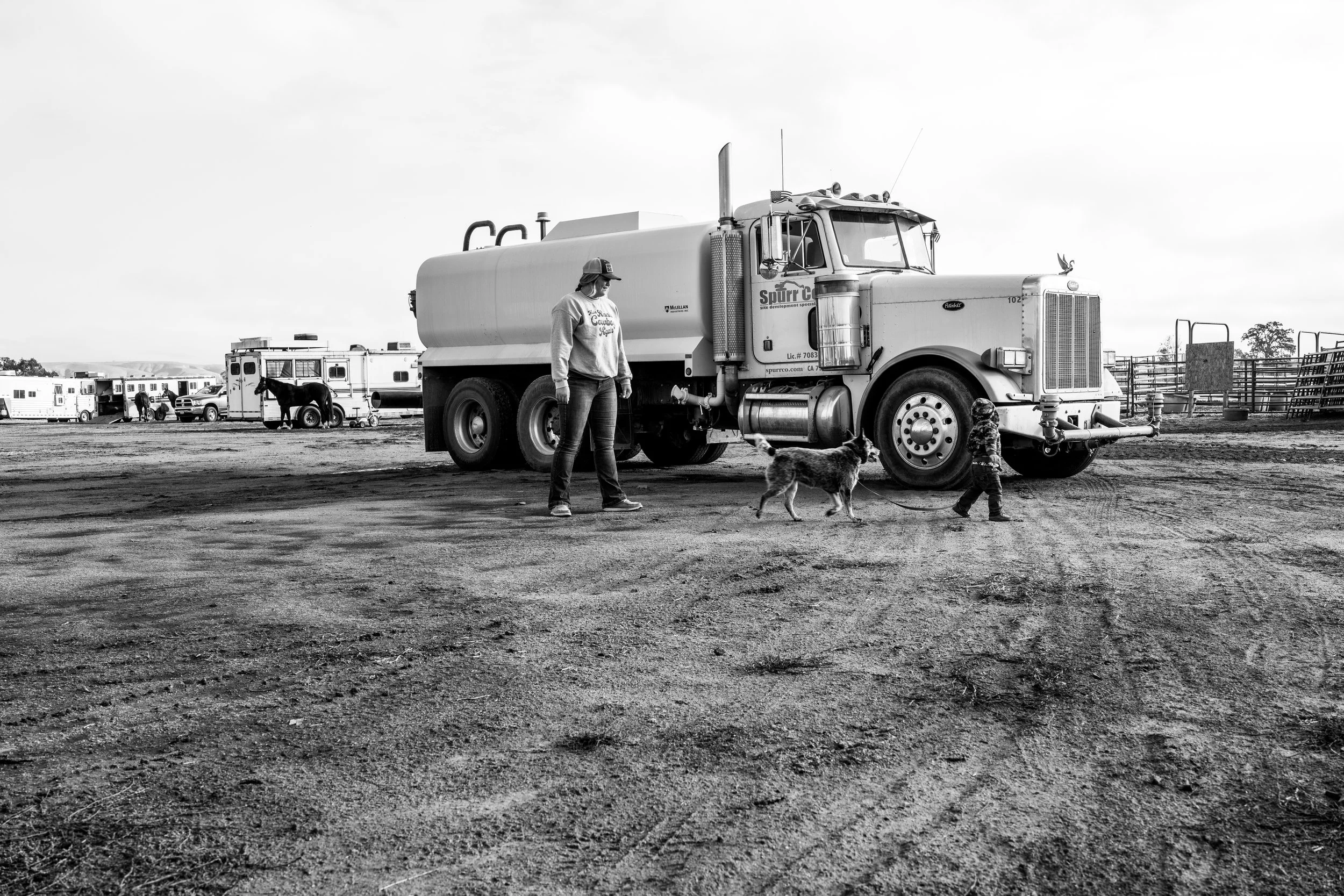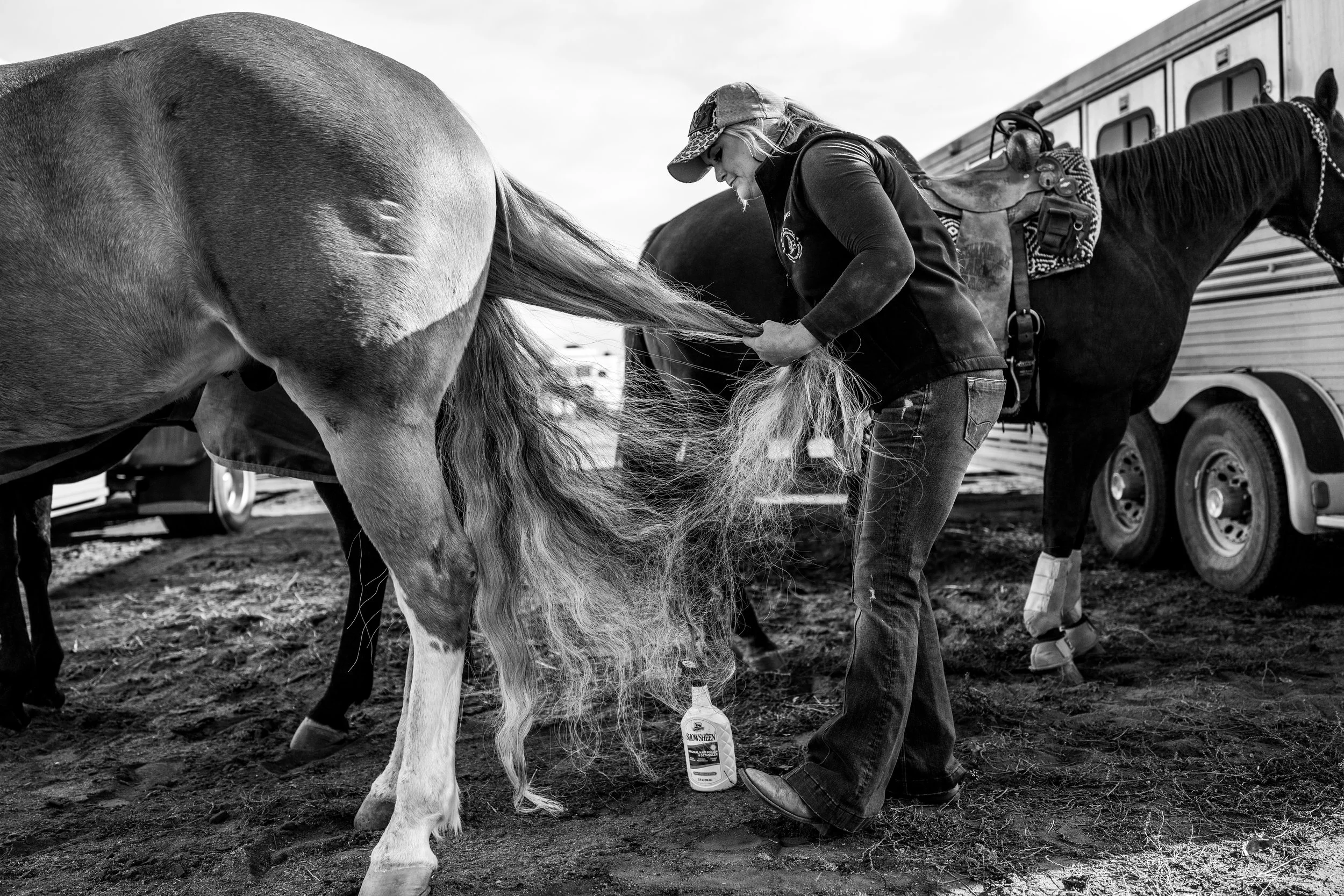 This Cowboy is taking a break after riding his horse. Bottle in hand…